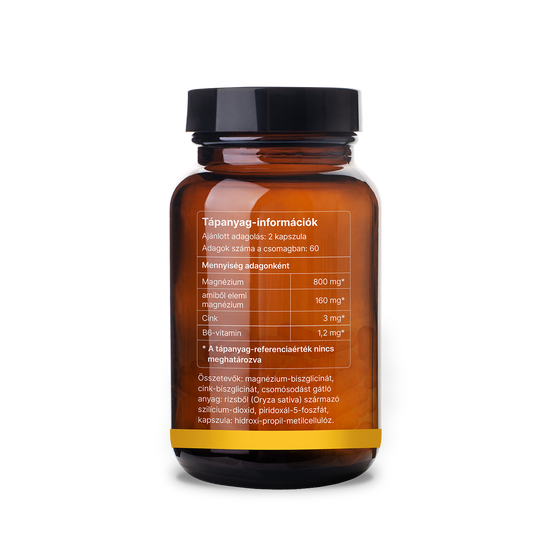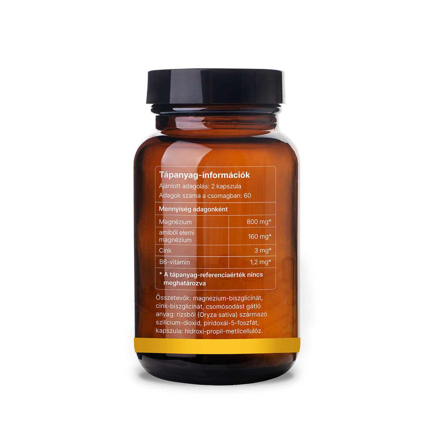 - Kelátolt magnézium és cink a maximális felszívódásért (magnézium-biszglicinát és cink-biszglicinát)