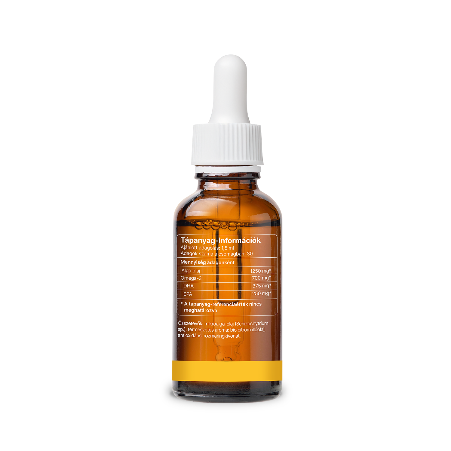 - Prémium minőségű olaj mikroalgából (Schizochytrium sp.)