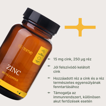 Cink-kelát és réz – kiegyensúlyozott támogatás az immunrendszer számára. A cink egyik legjobban felszívódó formája rézzel kombinálva az ásványi-anyagok természetes egyensúlyának fenntartása érdekében.